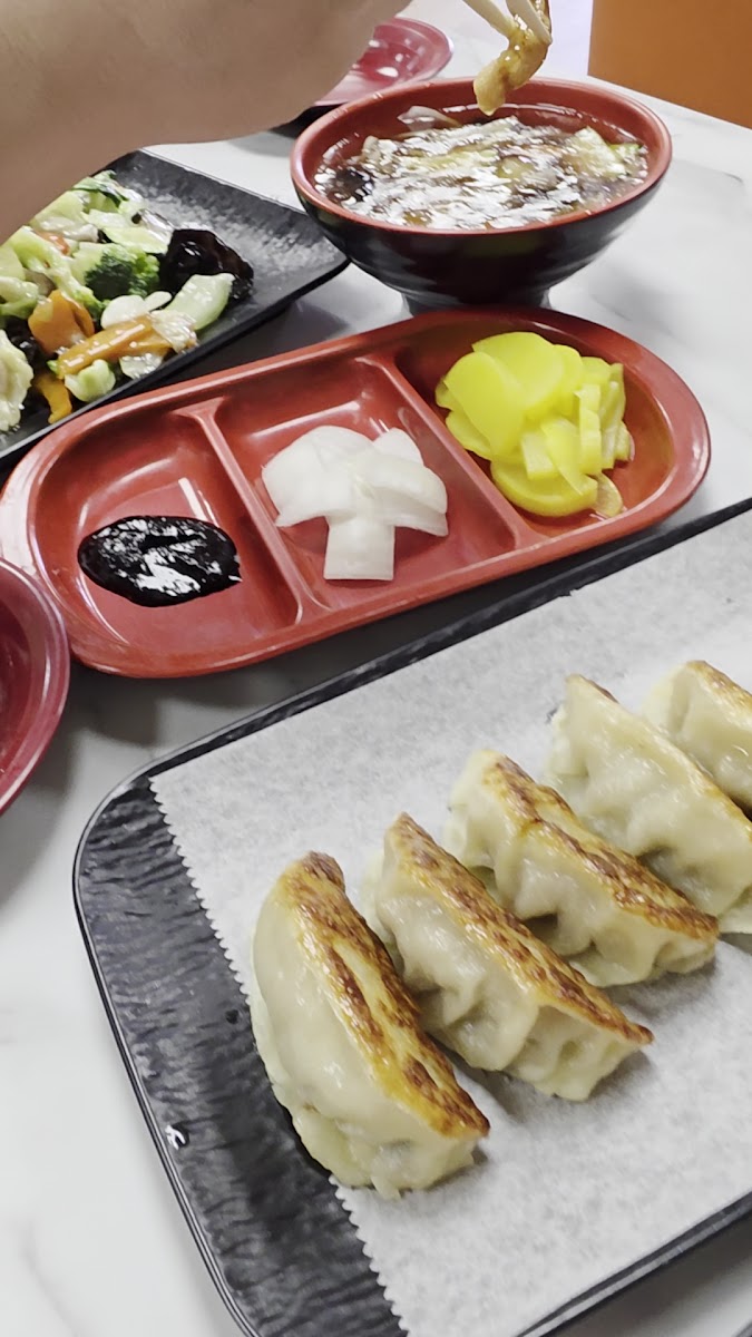 Their pan-fried dumplings deserve their own paragraph. The bottoms arrive crisp and lacy, a method called the skirt technique, where a cornstarch slurry is added to the pan to form a crunchy web. I watched the cook through the open window flipping the skillet just right, a move I messed up more times than I can count when I tried it at home. The result here is clean, no greasy residue on the plate, which says a lot about oil temperature control.